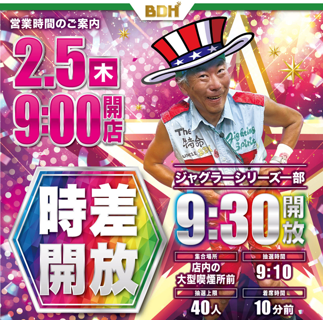 2月5日 一部時差解放 9時OPEN!!