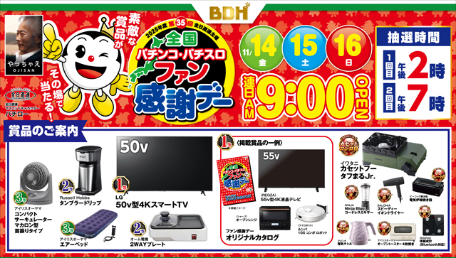 11月14日-16日 ファン感謝デー開催!!9時OPEN!!
