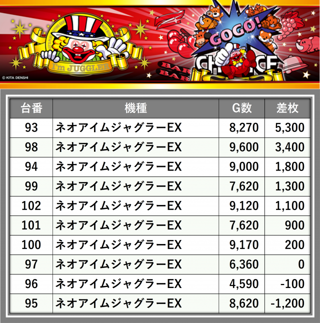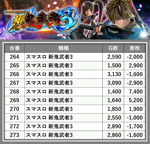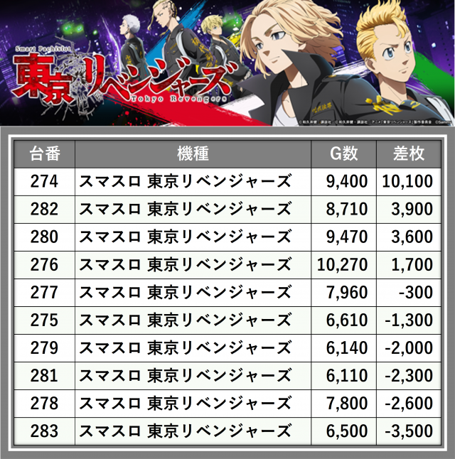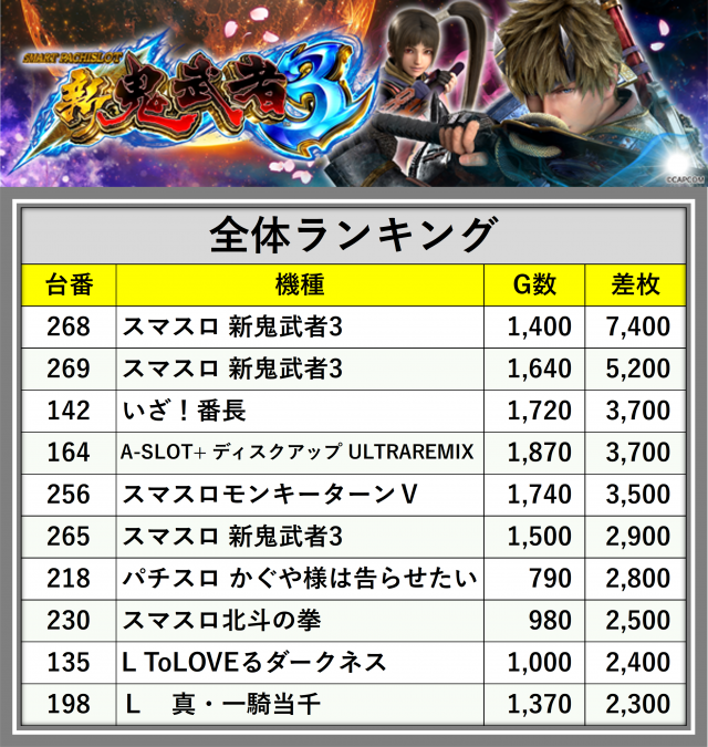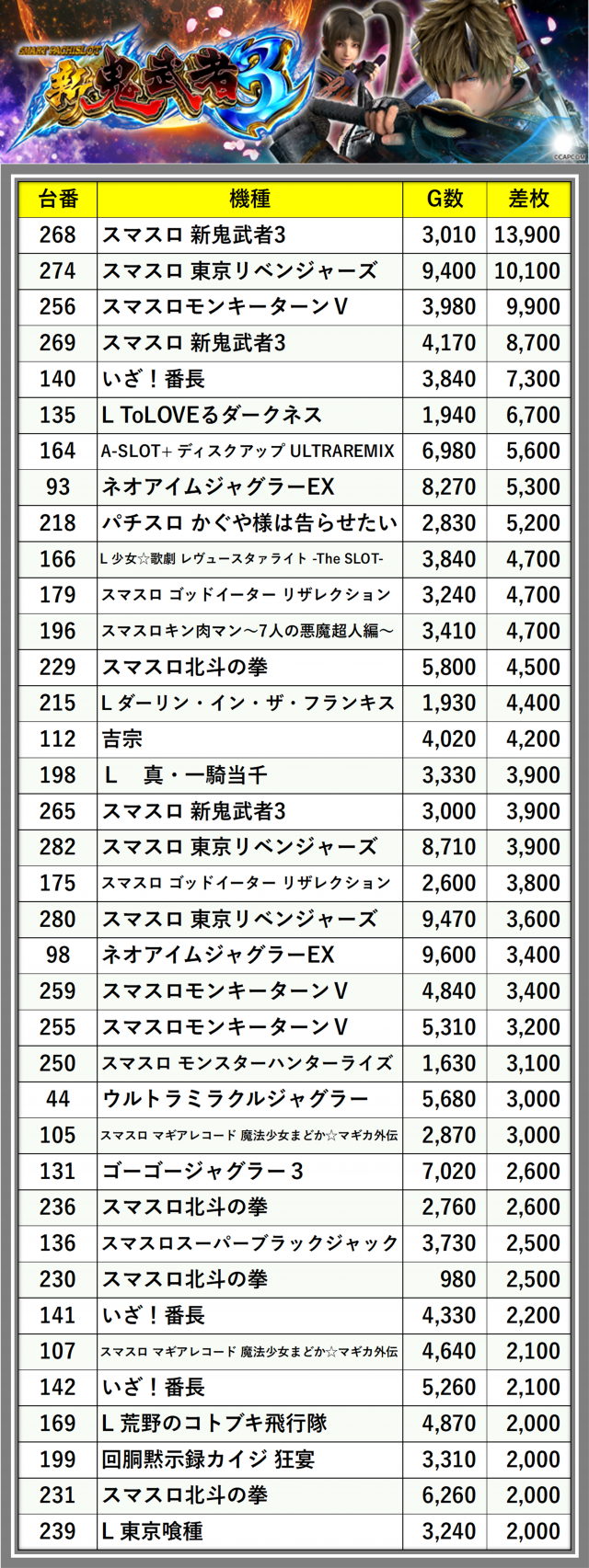 ※差枚数順に掲載しています