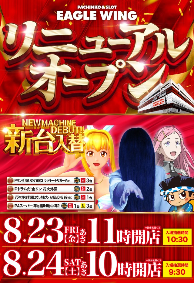 8月9日11時開店リニューアルオープン!2パチプラス始動!!