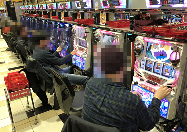 パチンコとパチスロを問わずに活気づいていたホール内においても、とくに鮮やかな光景がシマ全体に広がっていた。