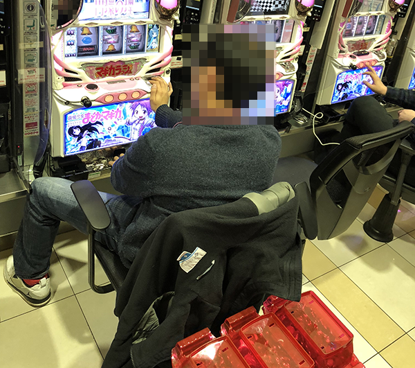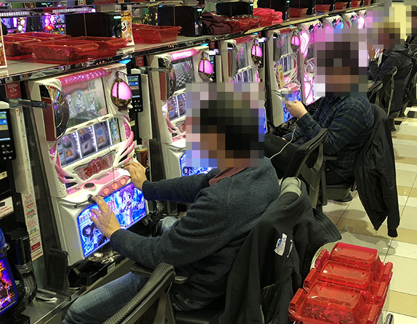 「SLOT魔法少女まどか☆マギカ」で遊技をおこなうプレイヤーたちの華麗なパフォーマンスが印象的。