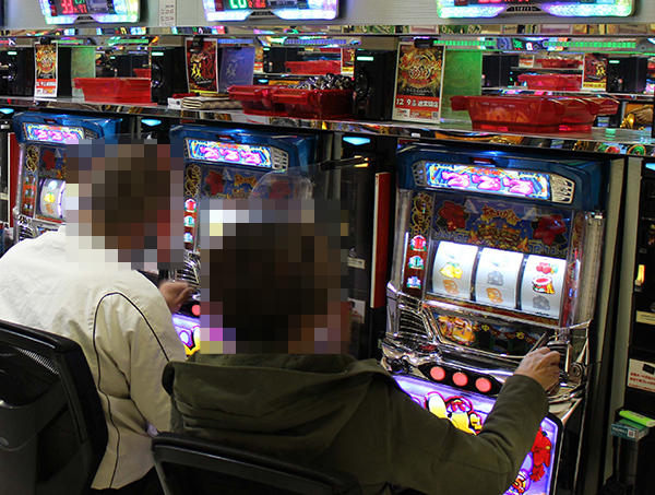 イキイキとした表情でレバーを叩いている姿からは、楽しい時間を過ごせていることが伝わってきた。たくさんの笑顔に出会えたパチスロコーナーのなかでも、ひときわ素敵なシーンを確認している。