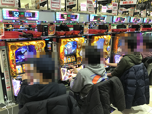 設置されている4台すべてが稼働していたうえに、プレイヤー全員が持ち玉で遊技をおこなっていた。