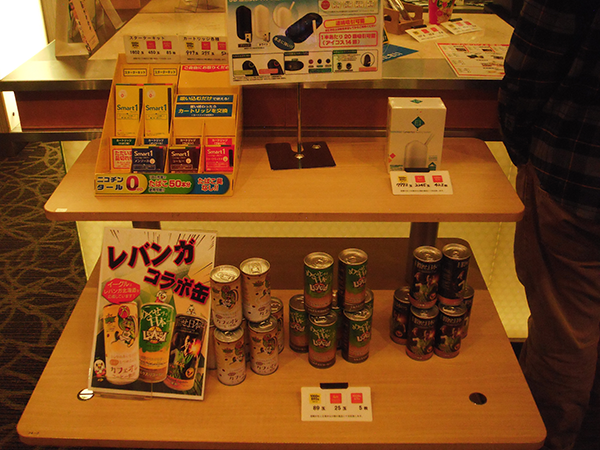 賞品コーナーには、地元のバスケットボールチームを応援するデザインのドリンクが並んでいた。地域に密着したホール内であることも、プレイヤーから愛されているポイントなのだろう。
