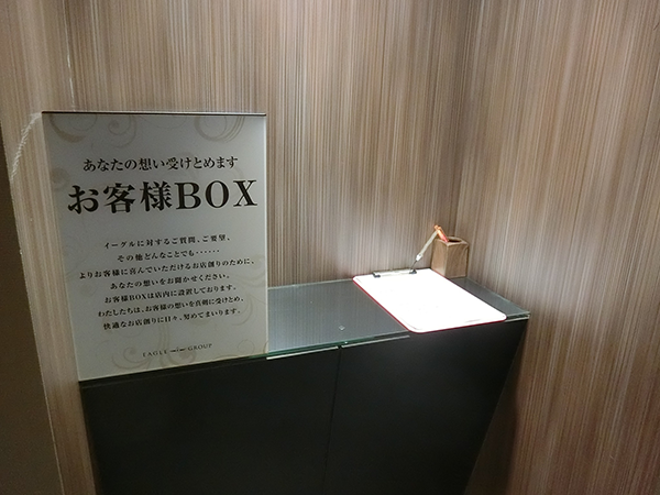 ホール内には、さまざまな意見を受け付けているアンケートボックスを設置している。プレイヤーからの意見を取り入れたホールづくりをおこなっていることにも好感を抱いた。