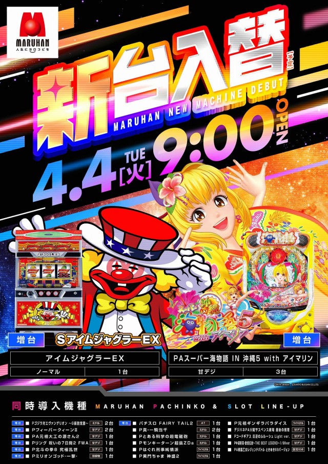 4パチ:108台 1パチ:160台 0.5パチ:36台 |