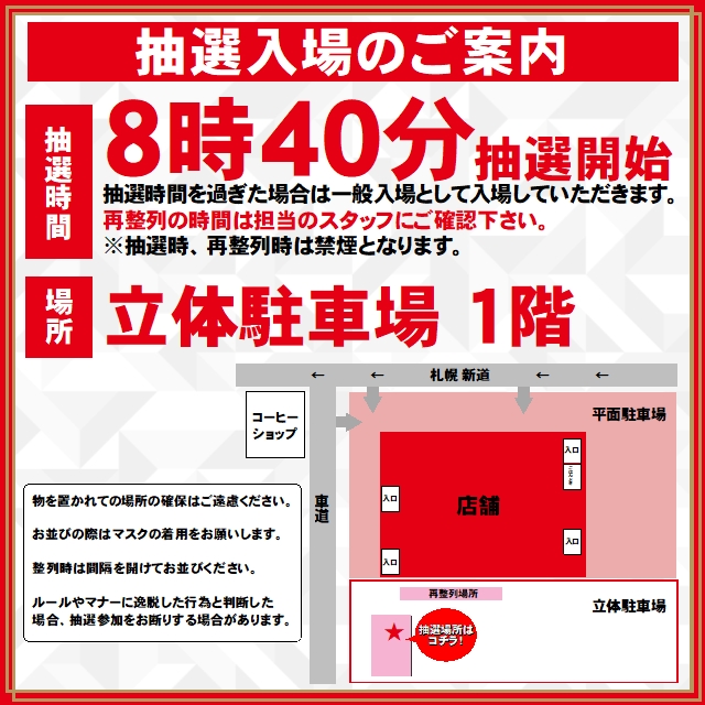 抽選入場にご参加の方は8:50までにお集まり下さい。 |
