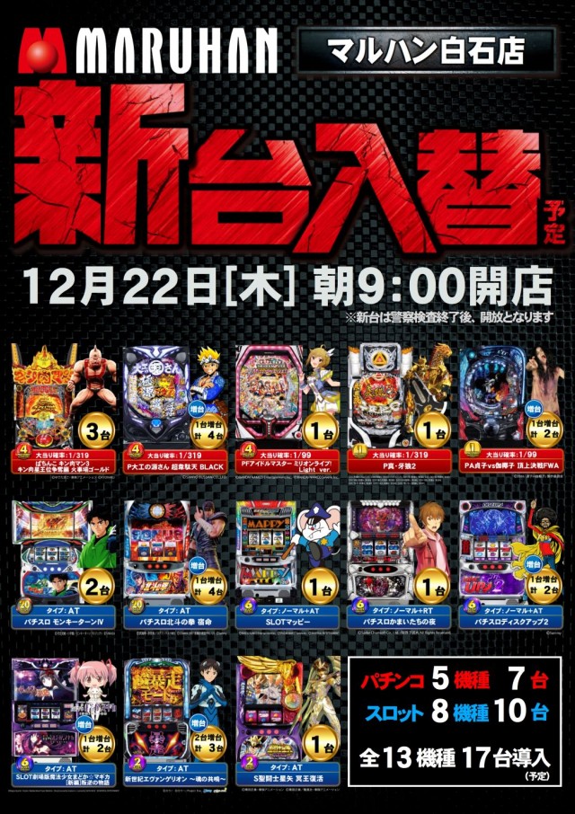 4パチ:108台 1パチ:160台 0.5パチ:36台 |
