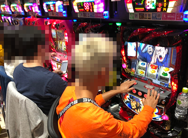 プレイヤーの笑顔を頼りに、ホールに潜む龍の存在を探していると、満席となっている「押忍!番長3」に辿りついた。