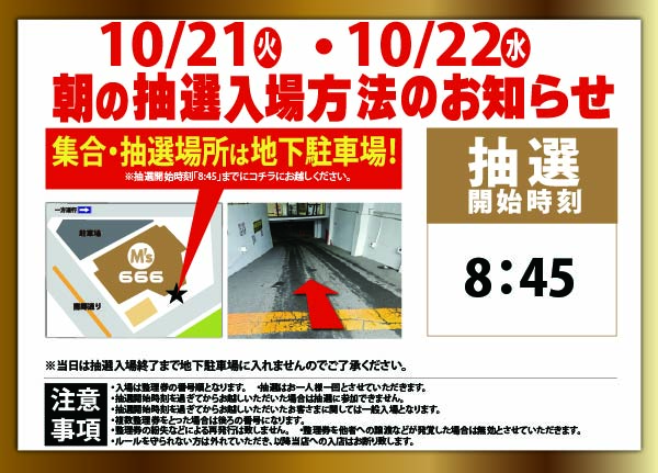 明日10/21(火)9時開店(8:45抽選開始予定)!!