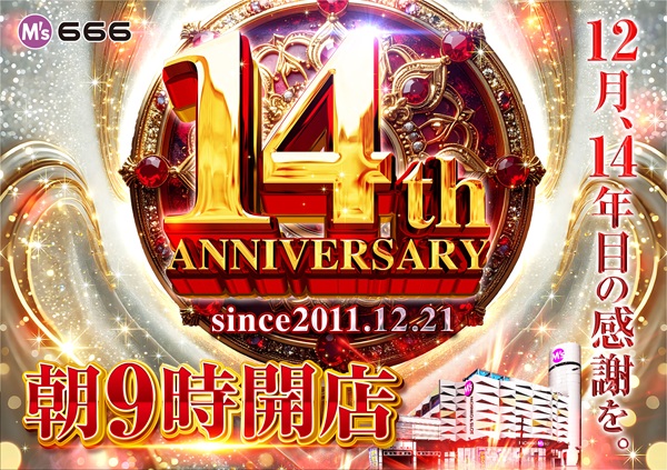 12月皆様のおかげで14周年へ!全国で人気機種も設置中!!