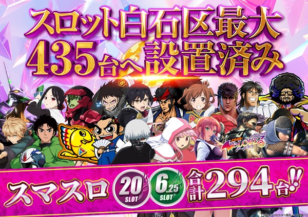 スロット435台へ増台済み!全国で人気機種も設置中!!