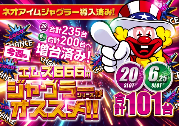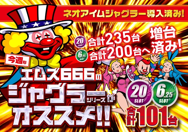 スロット435台へ増台済み!週末もエムズ666へ!