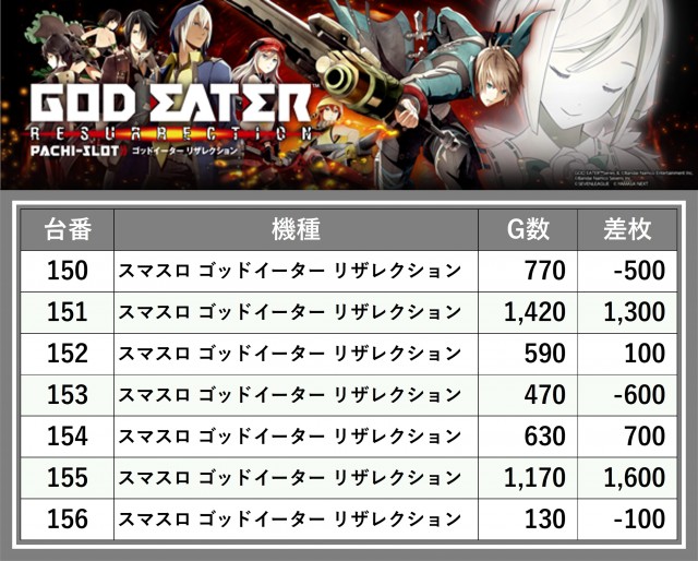 厳選された取材対象機種をはじめ、その他スロット全体から好記録が飛び出した!プレイヤーが楽しんだ1日を下記データにて振り返ってみて欲しい。