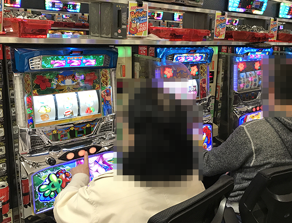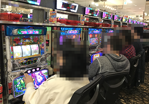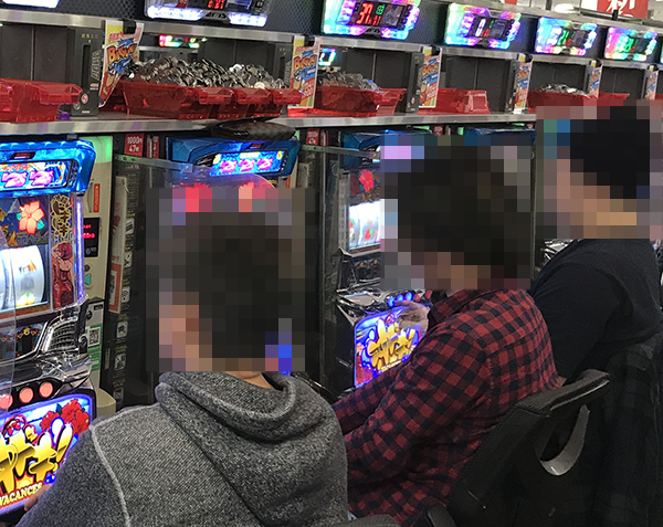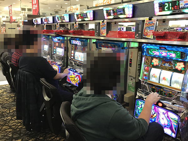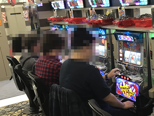 整備中の1台をのぞく5台すべてが稼働していたことにくわえて、ほとんどのプレイヤーが持ち玉で遊技を楽しんでいた。