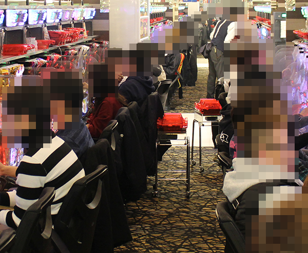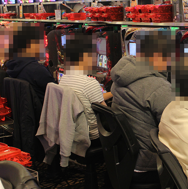 遊技をおこなっているプレイヤーの笑顔がひときわ輝いてみえた「押忍!番長3」のシマで足が止まった。プレイヤー同士で談笑するといったシーンがみられ、その場にいるだけで楽しい気分になったことも覚えている。