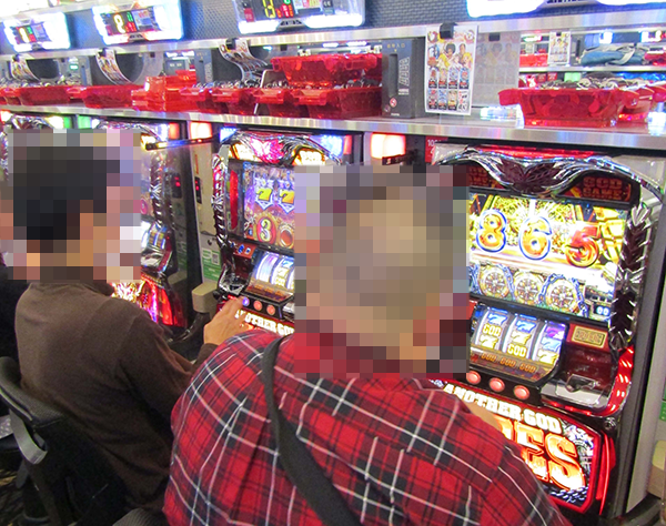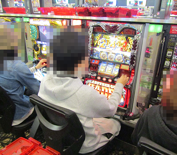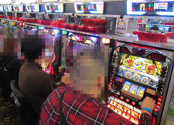 パチスロコーナーを進んでいくと、さまざまな機種で盛り上がりが感じられた。いたるところでキラキラと輝くような笑顔に出会えたことも印象に残っている。