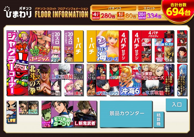 パチンコ.スロット各台計数機設置★分煙ボード完備★低貸玉コーナー80台設置