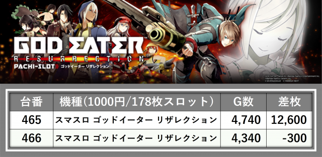 厳選された取材対象機種をはじめ、その他スロット全体から好記録が飛び出した!プレイヤーが楽しんだ1日を下記データにて振り返ってみて欲しい。
