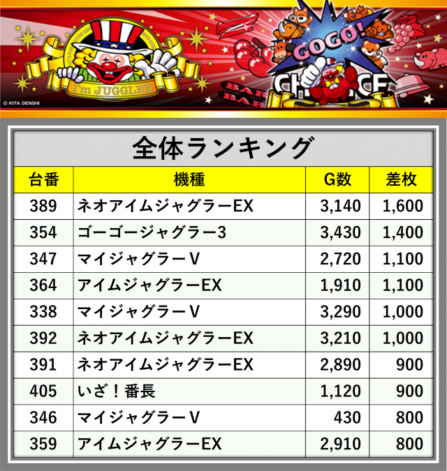 厳選された取材対象機種をはじめ、その他スロット全体から好記録が飛び出した!プレイヤーが楽しんだ1日を下記データにて振り返ってみて欲しい。
