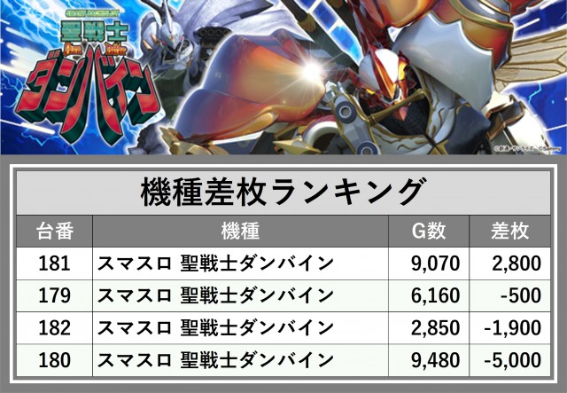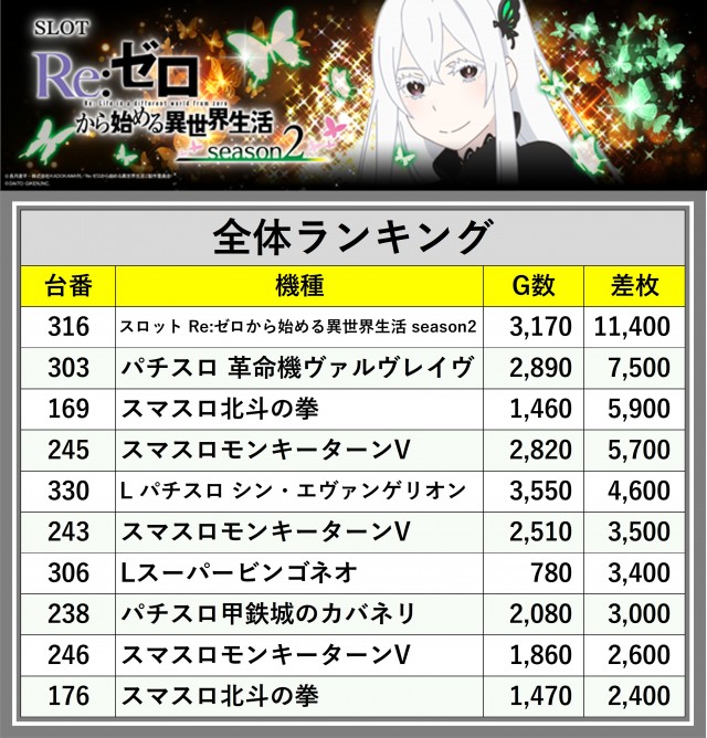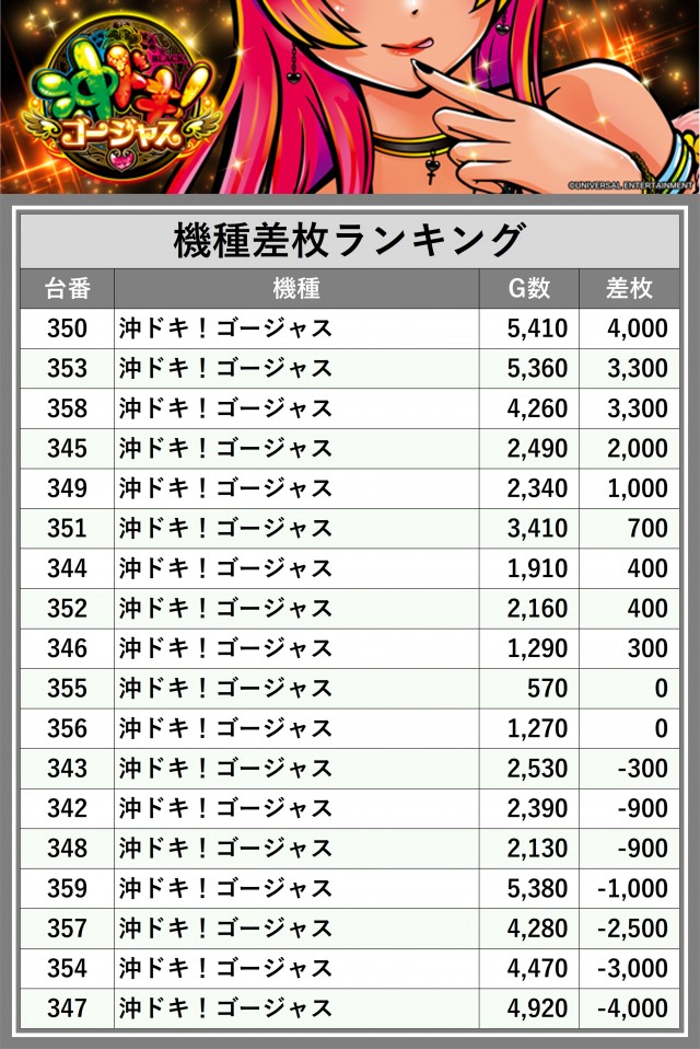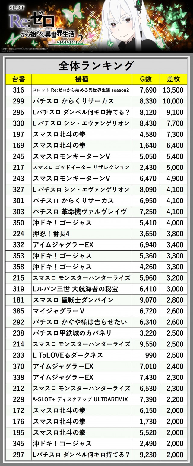 ※差枚数順に掲載しています