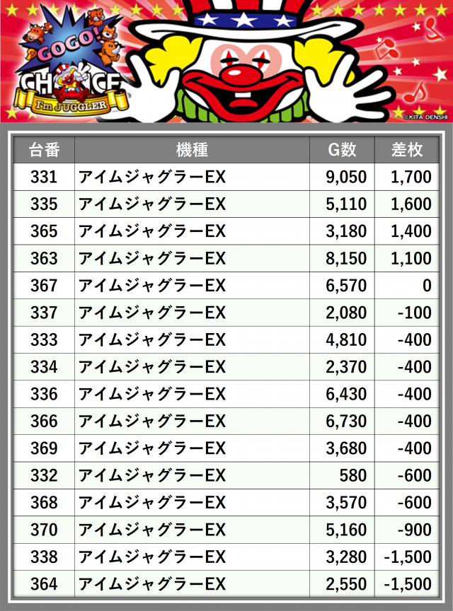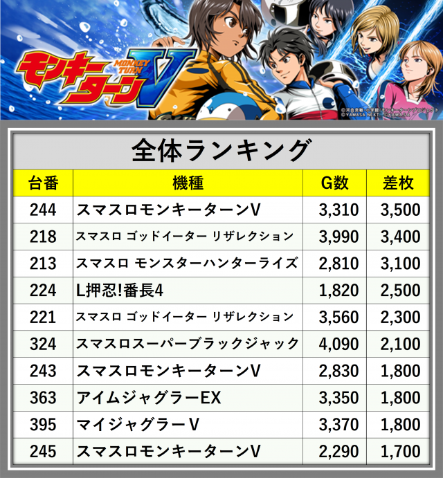厳選された取材対象機種をはじめ、その他スロット全体から好記録が飛び出した!プレイヤーが楽しんだ1日を下記データにて振り返ってみて欲しい。