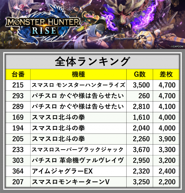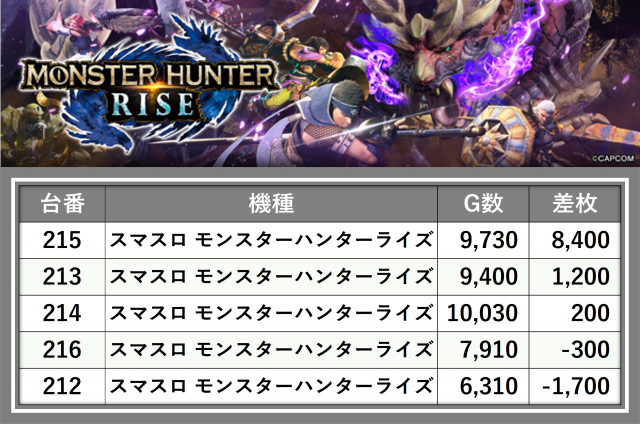 厳選された取材対象機種をはじめ、その他スロット全体から好記録が飛び出した!プレイヤーが楽しんだ1日を下記データにて振り返ってみて欲しい。
