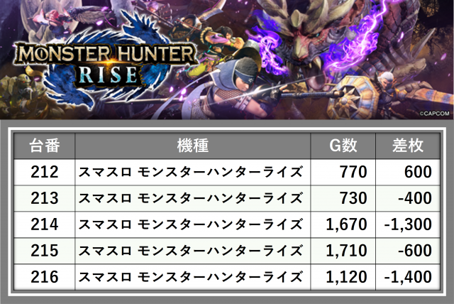 厳選された取材対象機種をはじめ、その他スロット全体から好記録が飛び出した!プレイヤーが楽しんだ1日を下記データにて振り返ってみて欲しい。