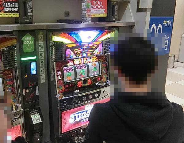 緑色を基調とした内装やピカピカに光る床など、清潔感にあふれるホール内を歩いていると、「マイジャグラーⅢ」で鮮やかなシーンを目にした。