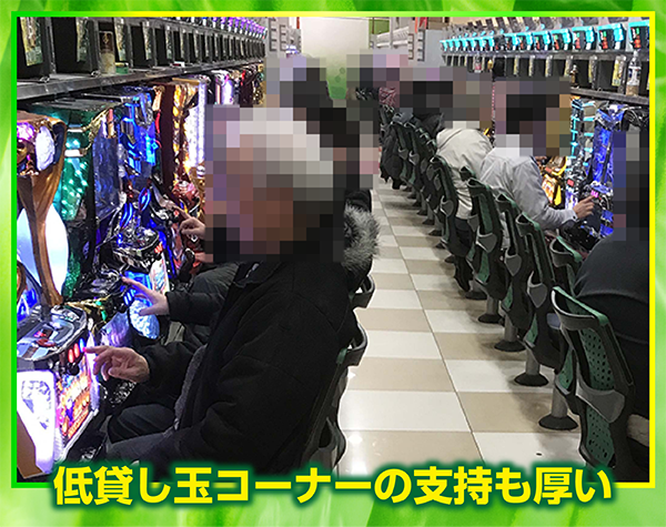 パチスロの低貸し玉コーナーも人気を集めており、1000円/178枚と1000円/445枚の両方が盛況。