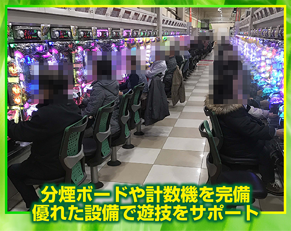 ホール内はすみずみまで清掃が行き届いている。スタッフたちがテキパキと行動をしていることもあり、いつ訪れても快適な環境で遊技を楽しめると思えた。