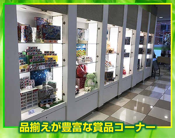 また、食品や日用品、子ども向けのおもちゃなど、幅広いジャンルのアイテムが取り揃えられている賞品コーナーも魅力的だ。
