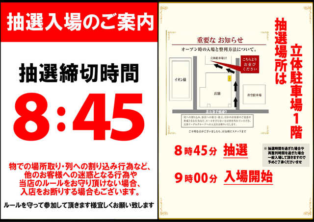 立体駐車場内の待機スペースにお並び頂いた順にスタッフが店内へご案内させて頂きます^^ |