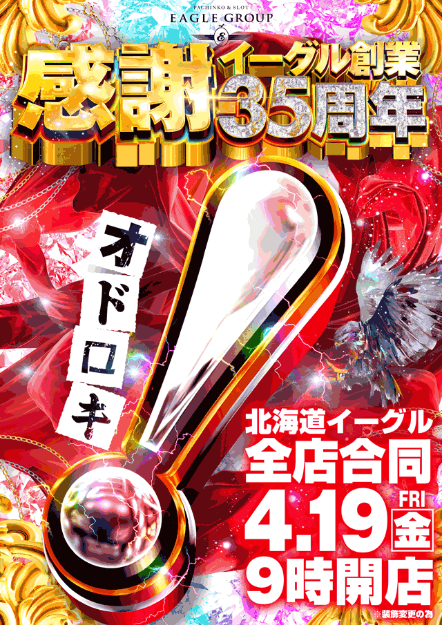 4月9日北海道イーグル全店合同&新台入替!