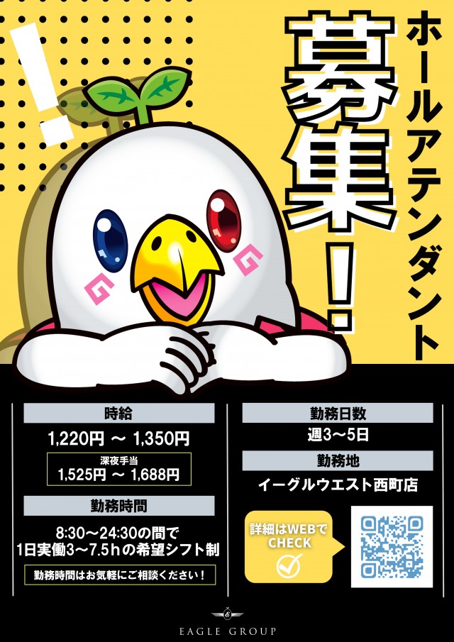 イーグル創業34周年 4月4全店一斉9時開店!新台入替!