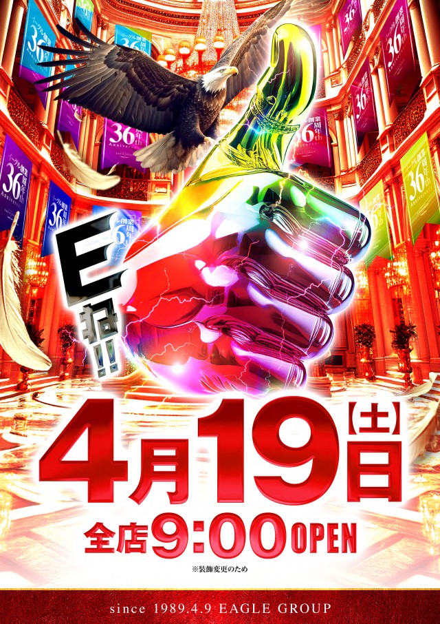 『 Eね!!👍 』4月19日全店合同9時開店🦅 抽選8:40