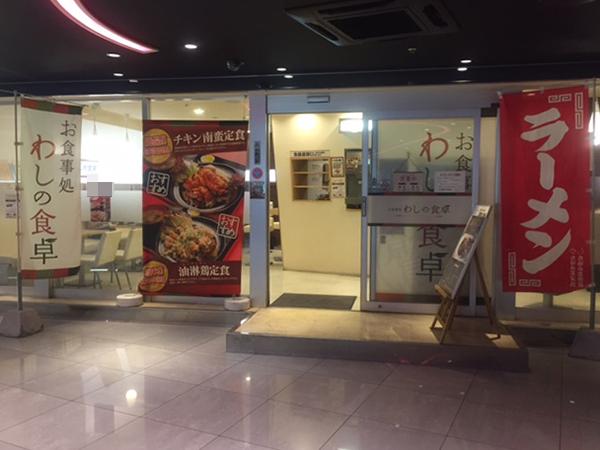 ホールには食事処「わしの食卓」が併設されており、チキン南蛮定食などが味わえる。