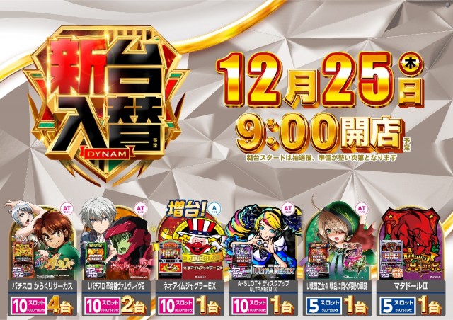 ダイナム手稲店 ゆったり館のお知らせ一覧