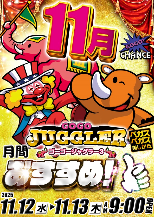 11月12日ベガスベガス美しが丘店!!朝9時開店!!