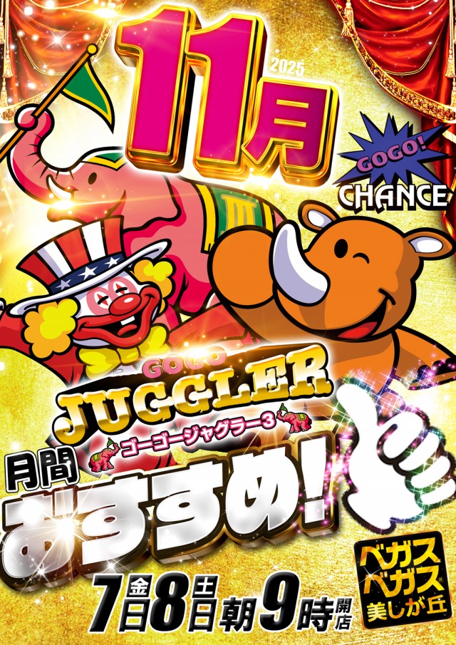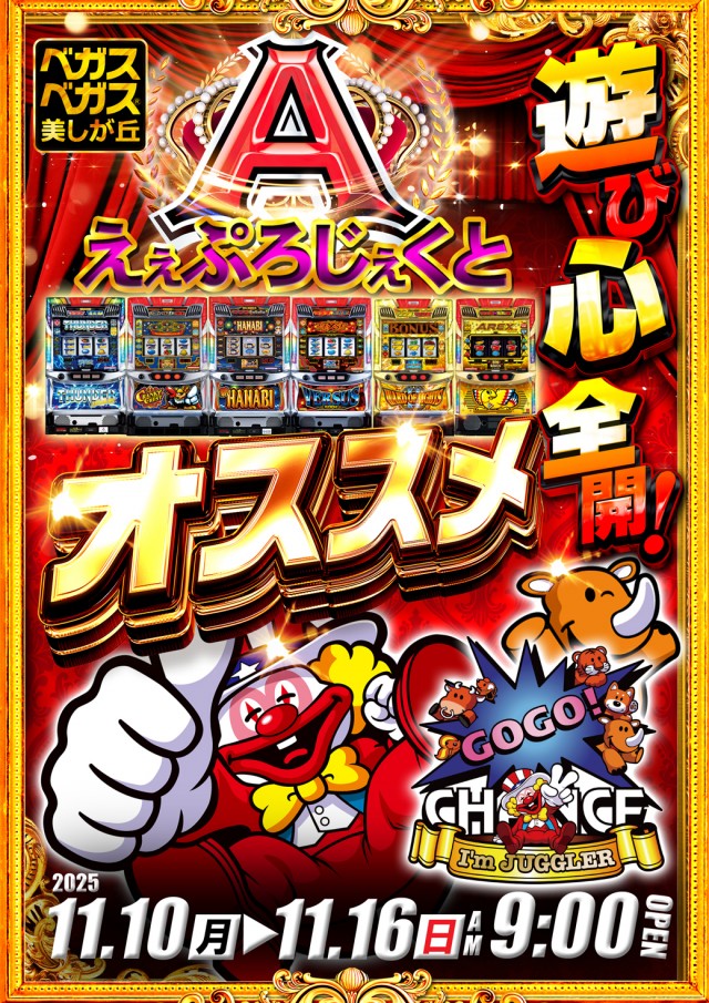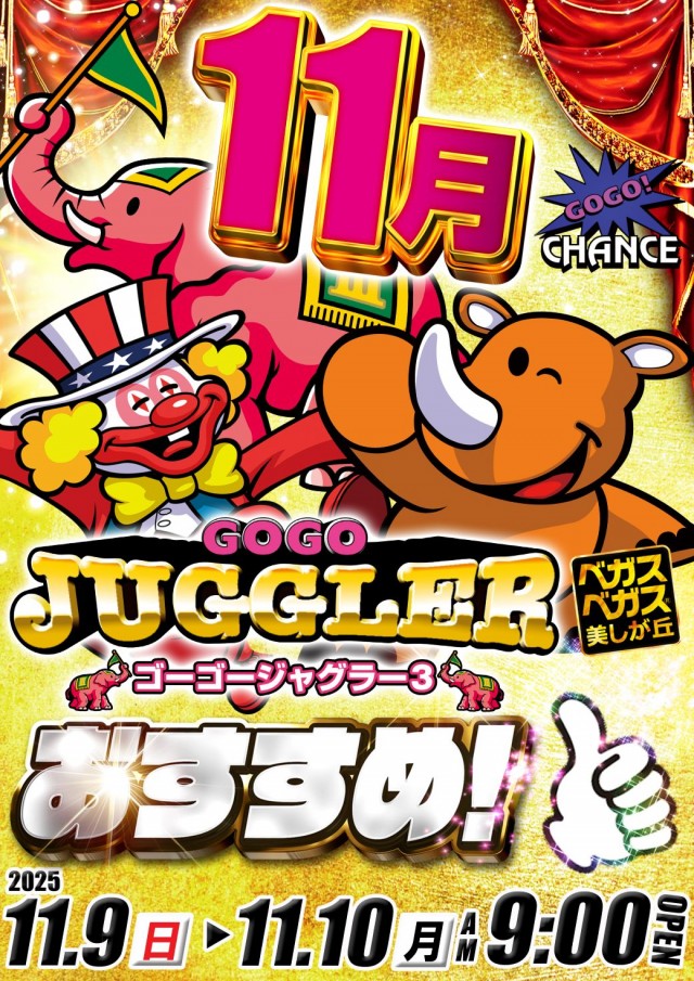 11月10日ベガスベガス美しが丘店!!朝9時開店!!