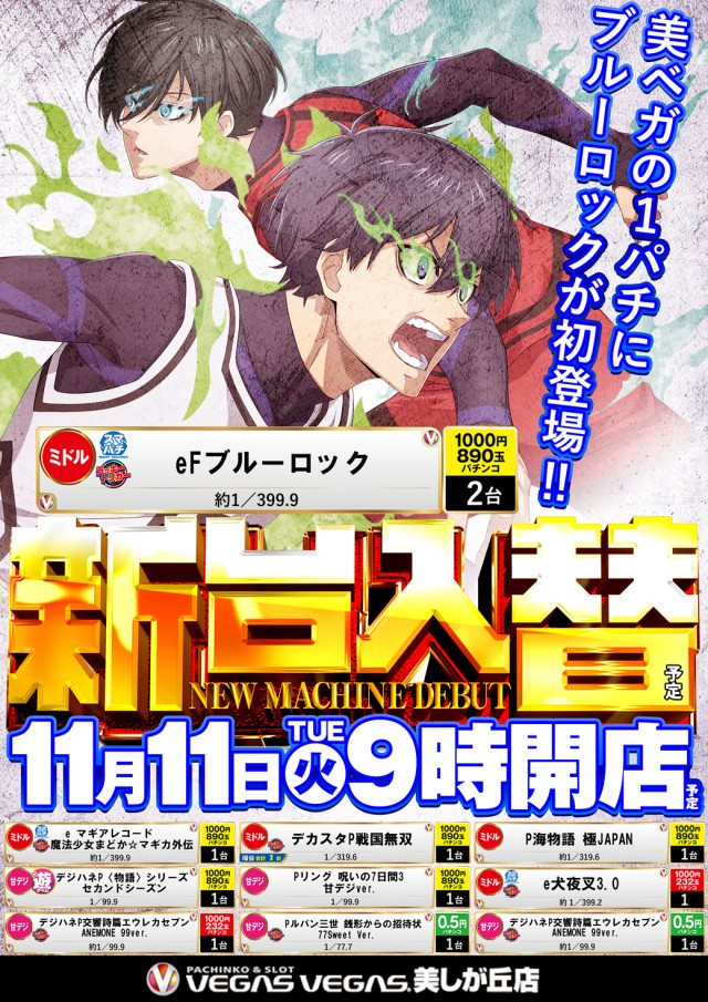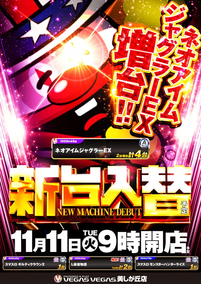 11月11日ベガスベガス美しが丘店!!新台入替予定!!