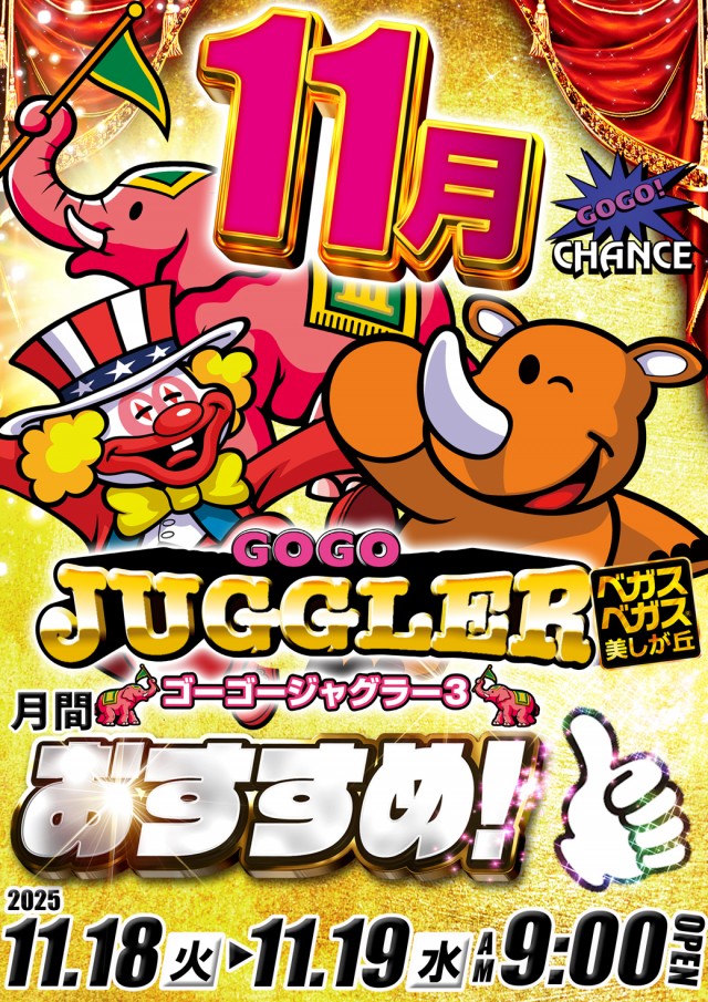 11月19日ベガスベガス美しが丘店!!朝9時開店!!