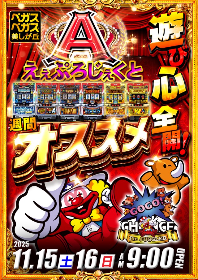 11月15日ベガスベガス美しが丘店!!朝9時開店!!