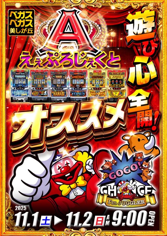 10月25日ベガスベガス美しが丘店!!朝9時開店!!