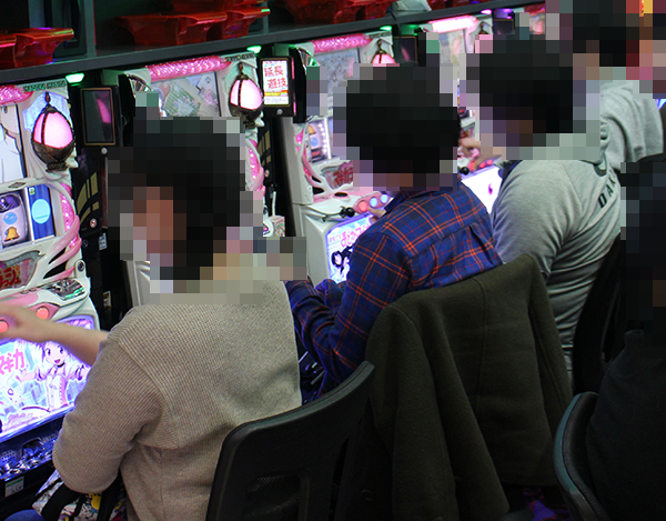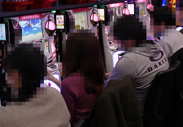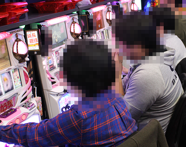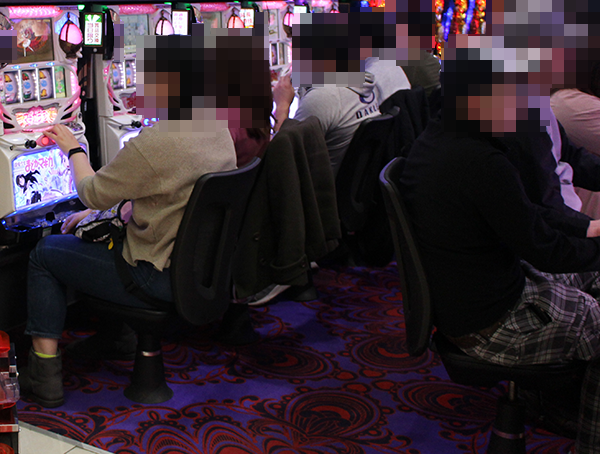 設置されている5台がフル稼働となっていただけではなく、ほとんどのプレイヤーがうれしそうにレバーを叩いていた。