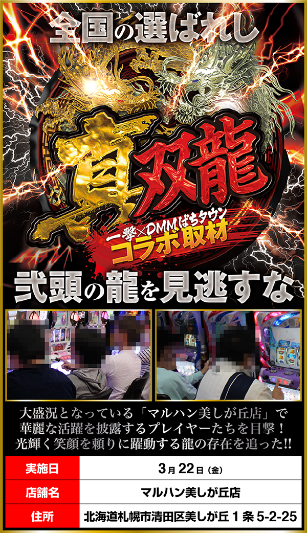 「真双龍」の舞台となったのはレストスペースや食事処を完備と、設備も充実している「マルハン美しが丘店」。