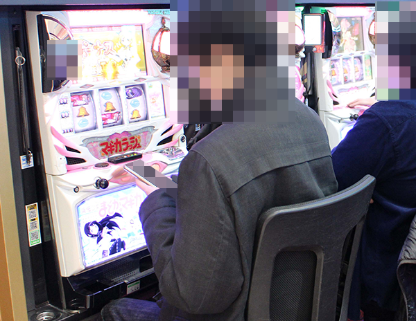 うれしそうにレバーを叩き、ストップボタンを押すといった姿が印象的であり、にこやかな表情からは遊技を満喫していることがうかがえた。
