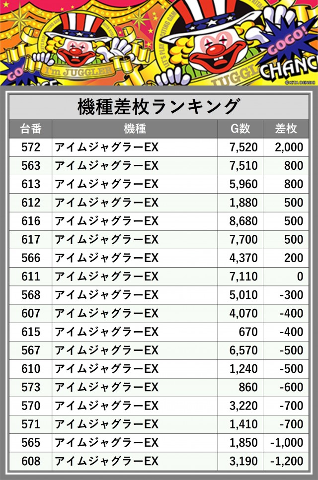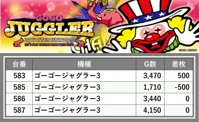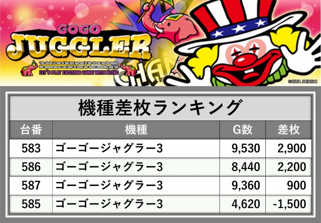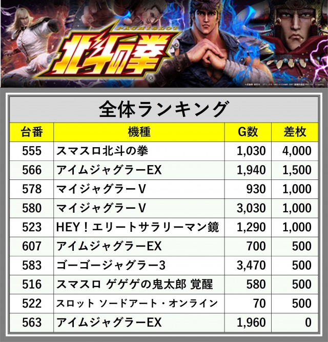 厳選された取材対象機種をはじめ、その他スロット全体から好記録が飛び出した!プレイヤーが楽しんだ1日を下記データにて振り返ってみて欲しい。