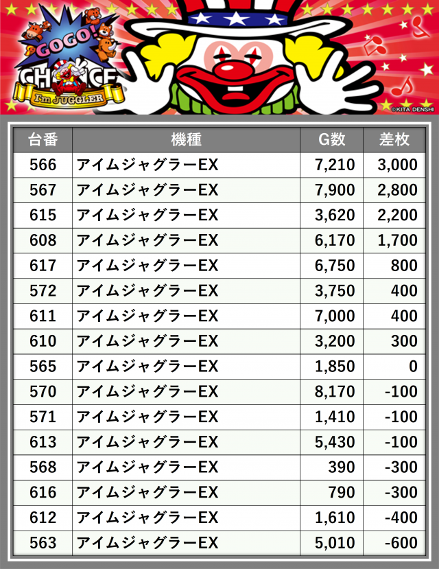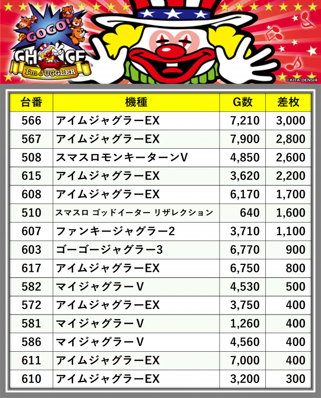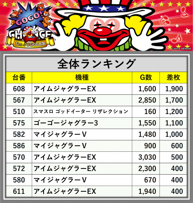 厳選された取材対象機種をはじめ、その他スロット全体から好記録が飛び出した!プレイヤーが楽しんだ1日を下記データにて振り返ってみて欲しい。